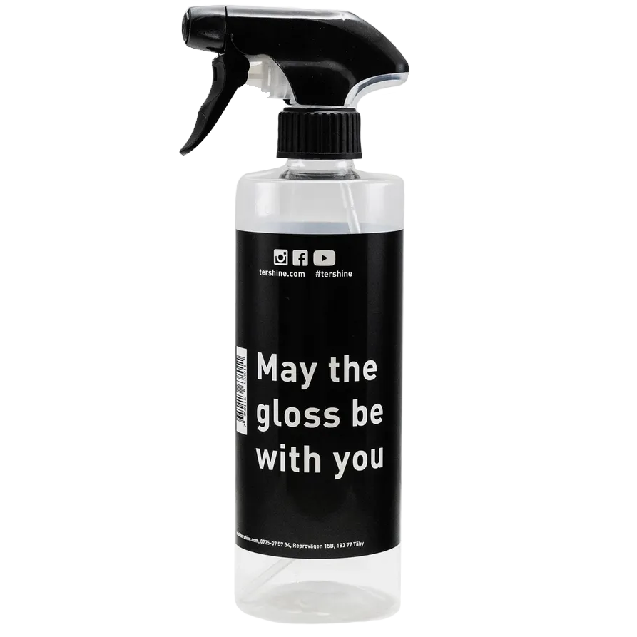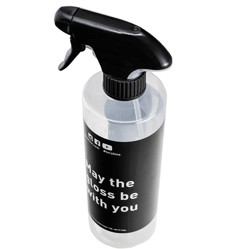 En fin og bra tomflaske inkl. trigger (spraymunnstykke) og etikett som du kan tynne ut Tershine Refract, Tershine Apex, Tershine APC eller andre væsker i.