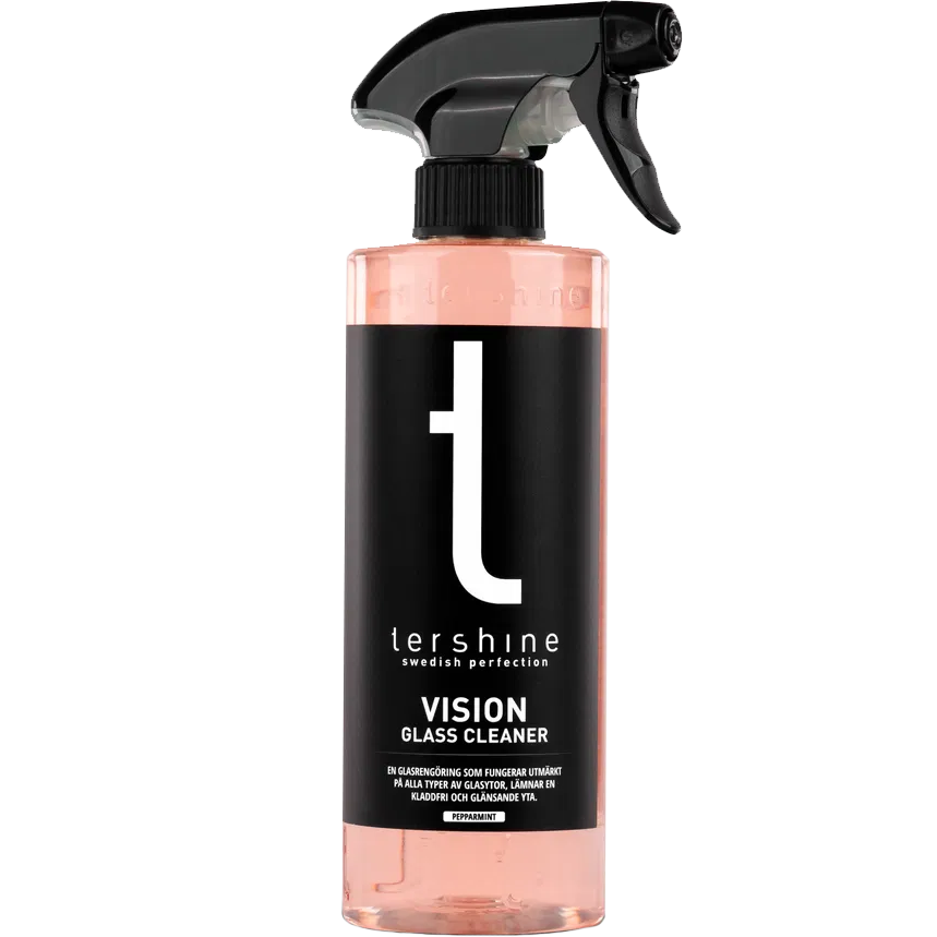 Tershine Vision er en effektiv glasspuss som kan brukes på glassflater i hjemmet eller bilen både innvendig og utvendig.