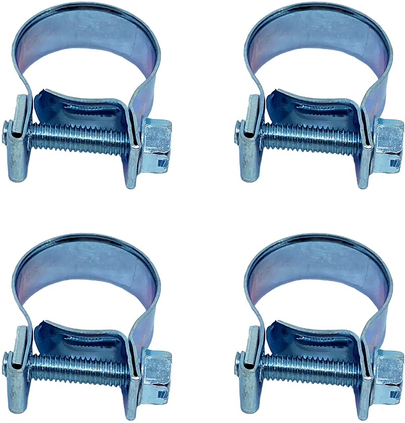 4 stk. slangeklemmer (mini). Disse slangeklemmene brukes ofte til drivstoffslanger og lignende, f.eks. på sittegressklippere m.m.